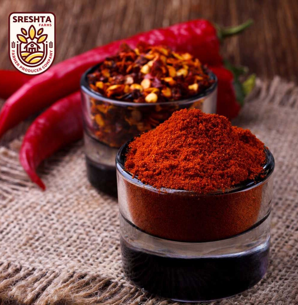 | MAIN INGREDIENTS | Contains Three Packs of Sreshta Farms Natural Masala Chilli Powder (200g), Sreshta Farms Spicy Black Powder (200g), Sreshta Farms Natural Chilli Powder (200g) Made from Red Chillies, Coriander Seeds, Cumin Seeds, Tamarind, Garlic |