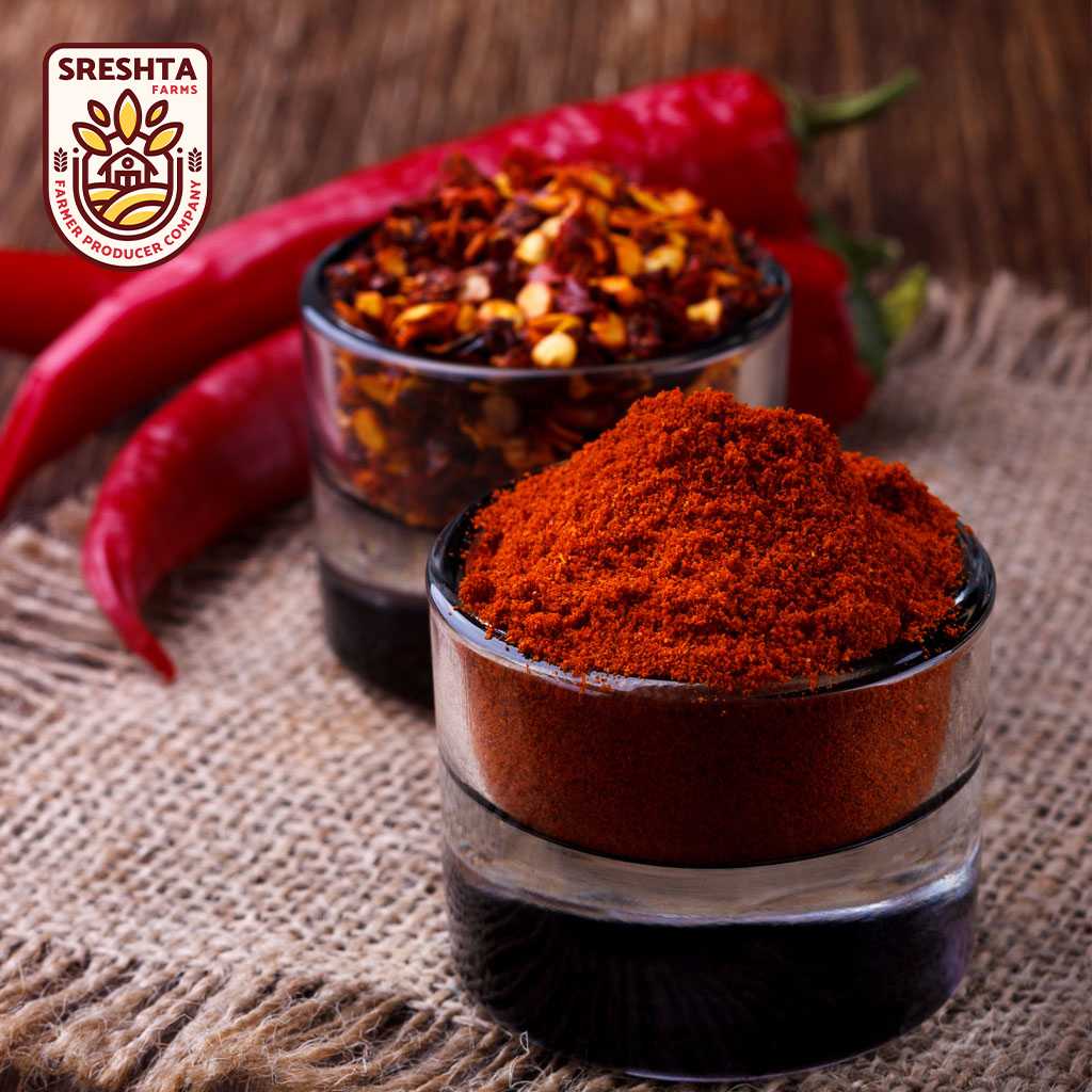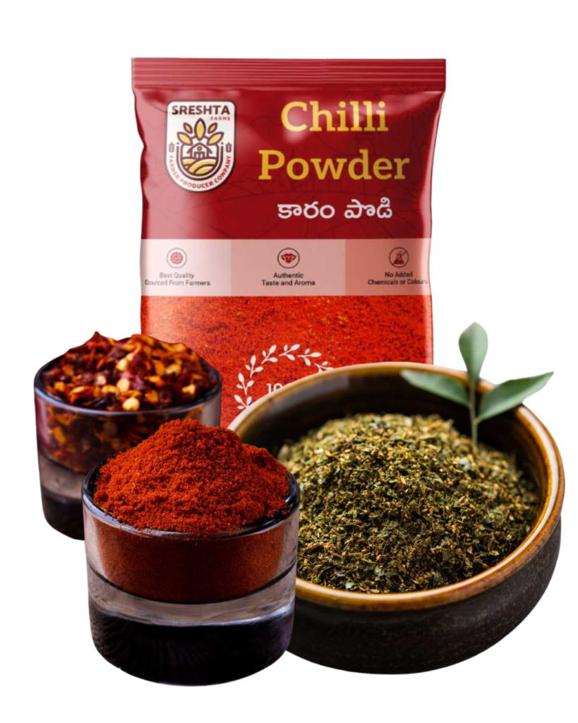 | MAIN INGREDIENTS | Contains Three Packs of Sreshta Farms Natural Masala Chilli Powder (200g), Sreshta Farms Spicy Black Powder (200g), Sreshta Farms Natural Chilli Powder (200g) Made from Red Chillies, Coriander Seeds, Cumin Seeds, Tamarind, Garlic |